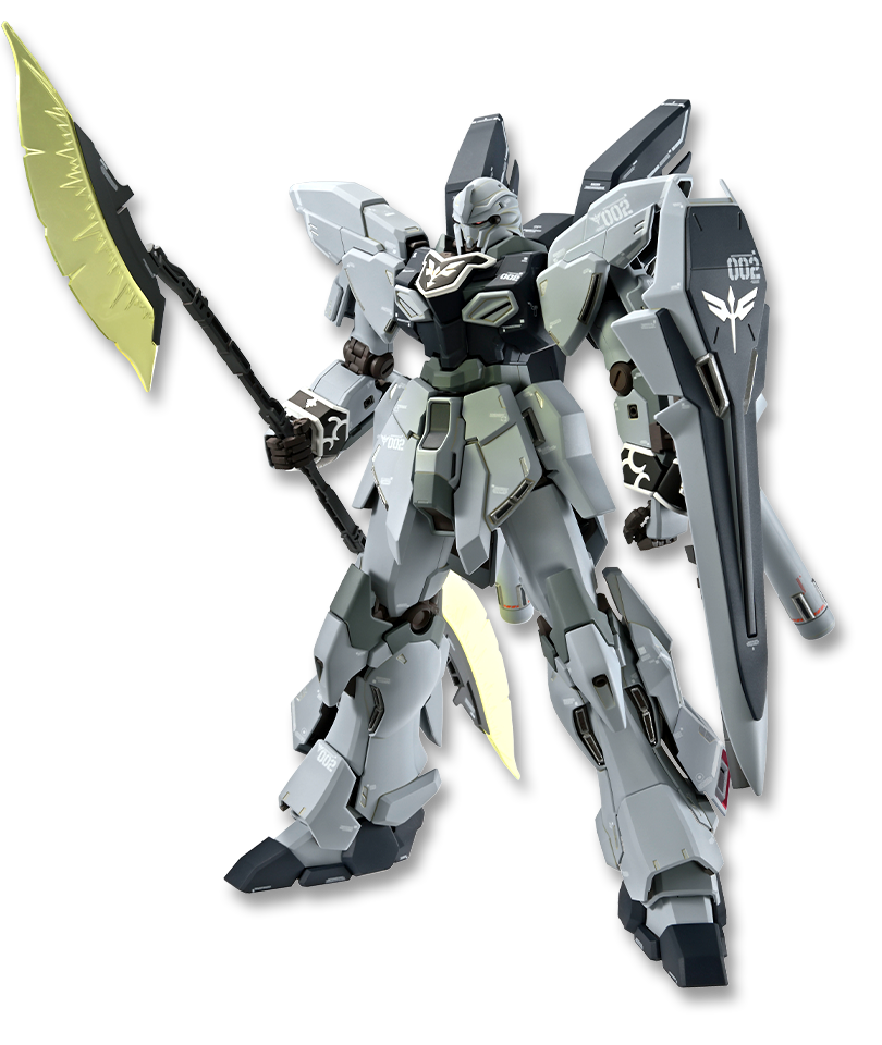 There were originally two Sinanju Steins in the world of the series. This was made clear from the beginning of the "Gundam Unicorn" novel series, but the role that the second Sinanju Stein played was kept hidden until "Gundam Narrative" was written. Some of you may remember there was another Sinanju Stein Ver.Ka that released about 10 years ago when there were still no plans to feature the MS in the animated "Gundam Unicorn" series, which was yet to be concluded. This time, we incorporated settings from the animated "Gundam Narrative" film and created engravings of Neo Zeon on the sleeves consisting of parts division, which can be recreated by simply assembling the kit. You can see that it embodies GUNPLA technology from the past 10 years. It also adopts design arrangements unique to this GUNPLA such as gimmicks where the Beam Naginata can be divided and stored.