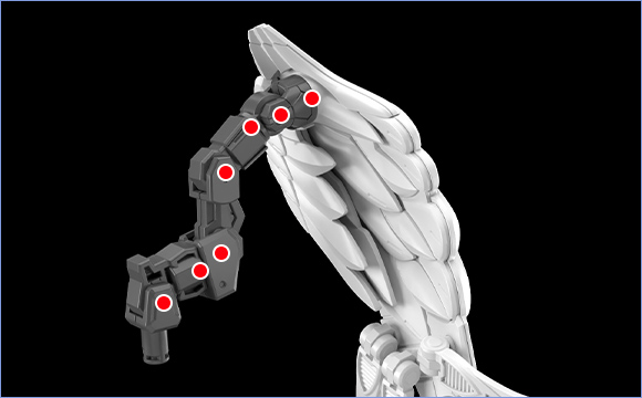 The wing joints are equipped with numerous movable points for flexible movement.