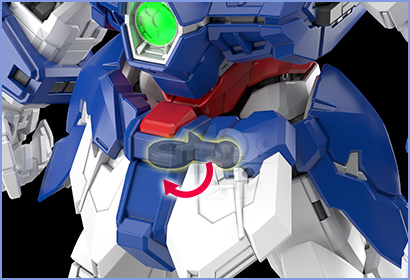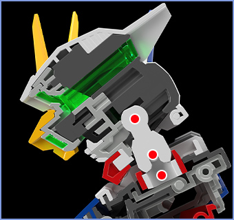 The knee armor, armor on the back of the shins, and thighs have gimmicks where the parts move and open in conjunction when the knees are bent. This allows for smooth knee movements that surpass those seen in previous SD series kits.