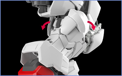 The shoulder armor parts have gimmicks where the lower armor parts move when the upper sections are raised.