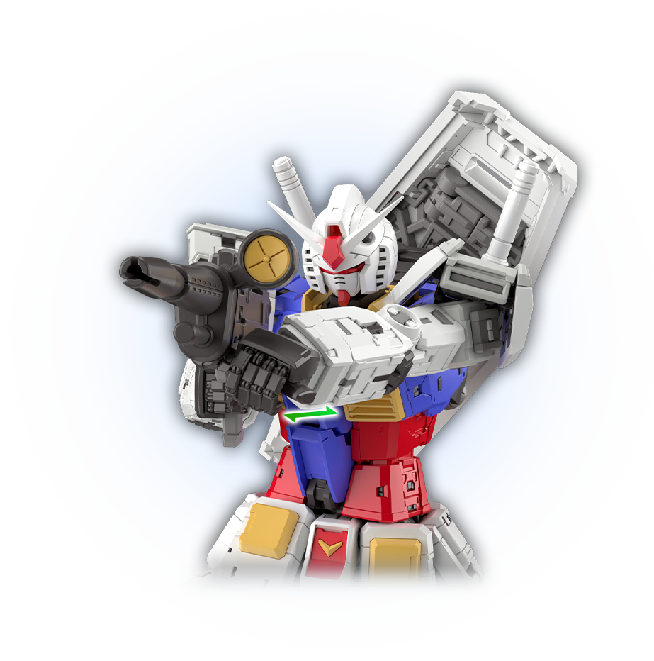 The Gundam in the series with aspects of both a machine and a weapon, while also being an enamoring presence with the mobility of a robot designed to resemble human beings. The RG RX-78-2 Gundam Ver.2.0 simultaneously incorporates the mechanical allure of Mobile Suits with flexible movements akin to human beings, and it aims to create a range of articulation that helps maintain the stylishness of the original Gundam’s design in any pose.