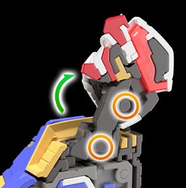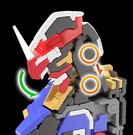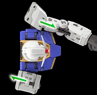 The shoulder armor parts have structures that open forward. Just like they are depicted in the series, the armor plates face the front when the arms are raised forward. Enjoy striking poses that fully make use of the Gundam design.