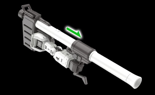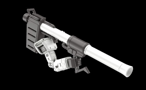 The Hyper Bazooka has a sliding structure that allows the barrel to be extended. This new structure allows the Gundam to hold the Hyper Bazooka even when its arms are outstretched, producing powerful pose.