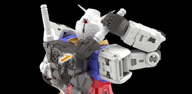 Mount holes in the armor now have reshaped mounting pins that function simultaneously as design elements, enabling seamless integration with the overall design as Mobile Suit. Even areas that are hidden when the armor is attached have been given mechanized details that evoke the feeling of an actual machine.
