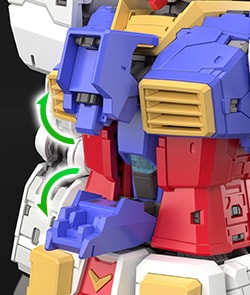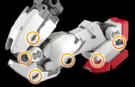 Joints such as elbows and knees now focus their movement on the cylindrical parts, as was the case in the original design. This element has often been absent in past GUNPLA, in which the joint structure was re-interpreted to increase the range of mobility. The new joint structure, "Turning Joint", for assembly by using the position of the cylindrical part as an axis and rotating enables a return to tradition while still ensuring sufficient mobility.