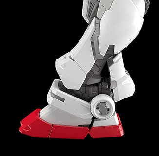 The soles on the feet are divided into three parts. The thrusters always follow the direction of mobile suits.