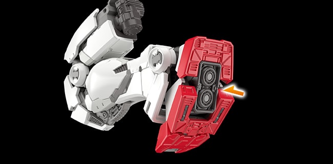 The Core Fighter can transform into a Core Block. While recreating the proportions of the Core Fighter's smart transformable fighter form, a newly developed auxiliary joint gimmick is built into the compact Core Block. This contributes to the realization of greater freedom in the Gundam's posing.