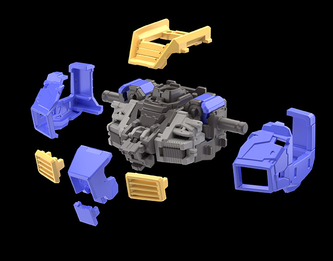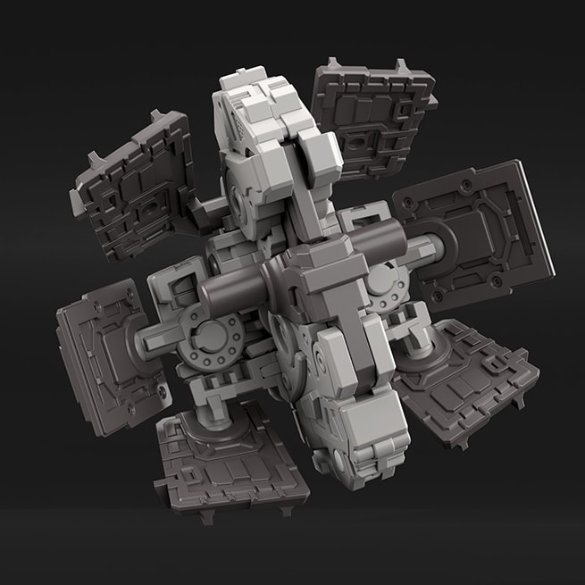 The armor that syncs with the unit's movement is divided into functional blocks. The so-called panel lines are no longer just a design flourish and now evoke the actual partition lines. We have sought to create the silhouette by focusing on an outer appearance with lines that remain attractive, even during movement.