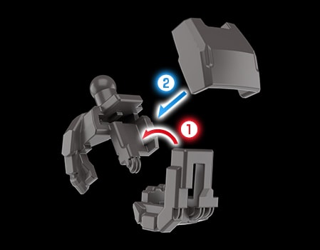 The parts that make up the hands have new designs where they lock together like wooden framework when they are combined. This structure prevents them from coming off even when supporting the load of weapons.