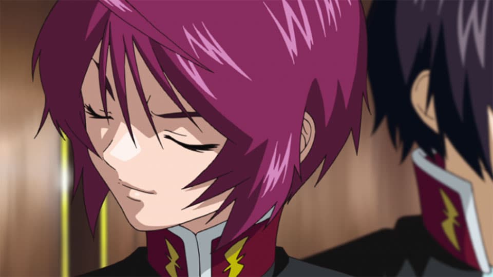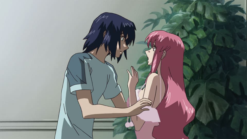 Wandering by himself, Shinn sees a young woman falling into the sea and dives in to rescue her. This woman is in fact Strellar Loussier, one of the "Extended" who attacked Armory One. Shinn calms the frantic Stellar by promising to protect her, little suspecting her true identity.